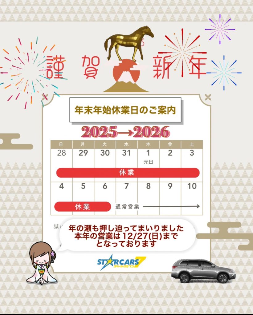 新年は1/7(水)10時より通常営業いたします🚗³₃